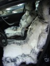 Меховые накидки на сиденья автомобиля из натуральной австралийской овчины. Цвет белый/дымчатый. В комплекте 5 предметов. Длина меха 5 - 8 см. Мех длинный по краям и стриженный в центре.